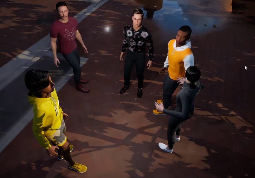 Recent advances in computer graphics have made it possible for virtual environments to feature realistic lighting and 3D models. Such 3D models can be achieved using the MetaHuman framework, which allows for creating photorealistic virtual characters. With these advances the focus starts to shift for better character locomotion and AI behavior. The characters must be able to showcase behavior that are closer to that of a human being. If the characters does not exhibit human like behavior than a user observing the character might feel at unease with the character, a phenomenon known as the uncanny valley. This thesis presents a system for virtual agents capable of performing realistic non-verbal social maneuvers in a virtual environment. Built on the MetaHuman framework in the Unreal Engine, the system integrates high fidelity character models with independently controlled body regions including gaze, head, chest, and a novel feet orientation subsystem allowing agents to express nuanced social behaviors such as low- and high-commitment interactions. A behavior component coordinates these body motions according to social dynamics, while a group conversation system manages turn-taking and multi-agent coordination within conversation circles. The design is grounded in established social theories by Scheflen and Kendon, particularly concerning interpersonal spacing, body regions, and Fformations. Evaluations demonstrate that the system not only supports believable agent behavior but is also flexible and easily configurable, enabling rapid adjustments to orientation speed, target selection, and social engagement parameters. This work contributes to the development of socially intelligent virtual agents for applications in games, virtual reality, and interactive simulations, bridging the gap between theoretical social behavior and practical, real-time implementation.